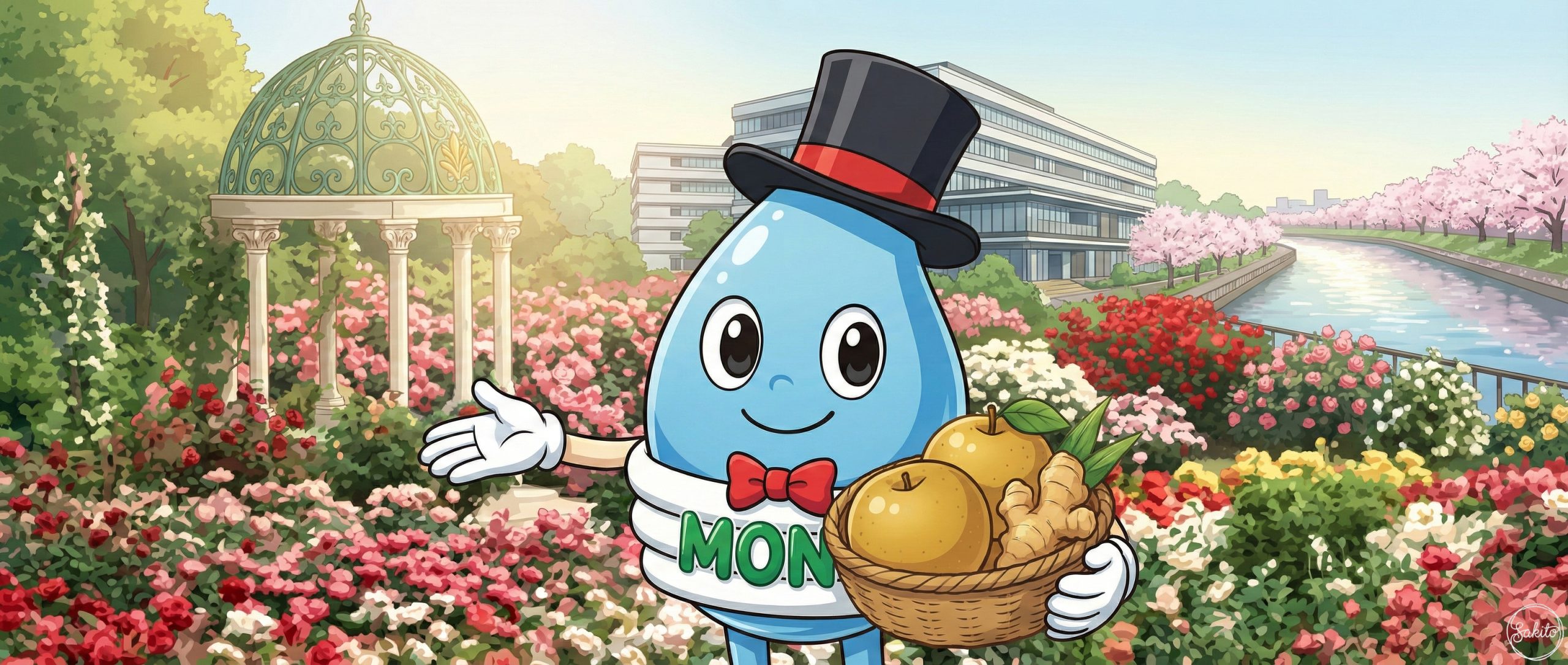 世界に誇るバラ園は、まさに花のパラダイス。MONOくんと満開のバラに囲まれて、優雅なティータイムを過ごしてみない?