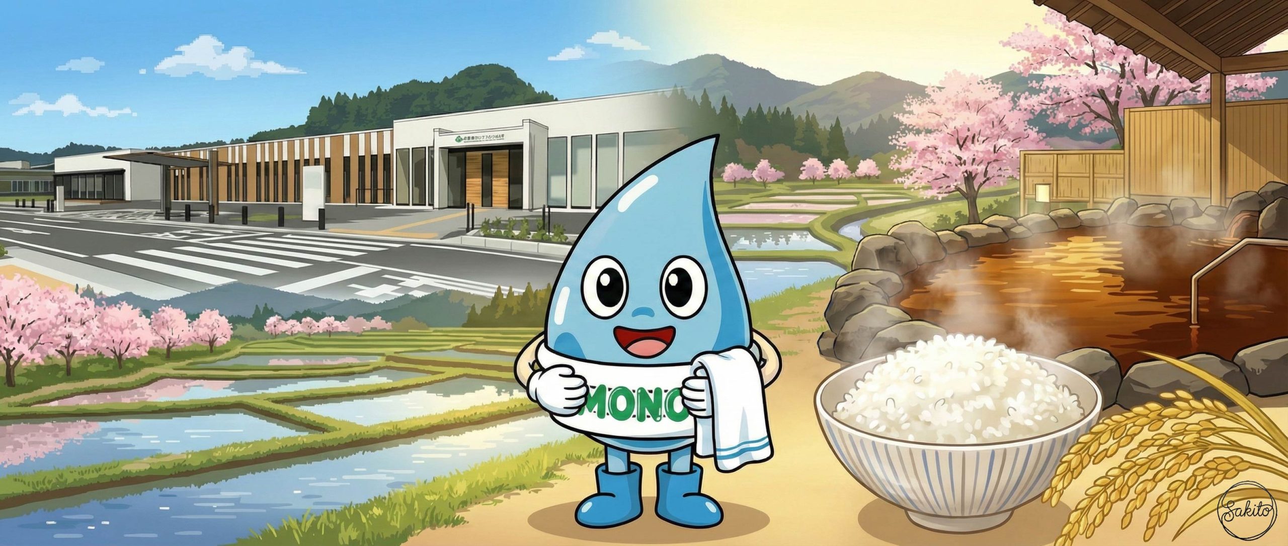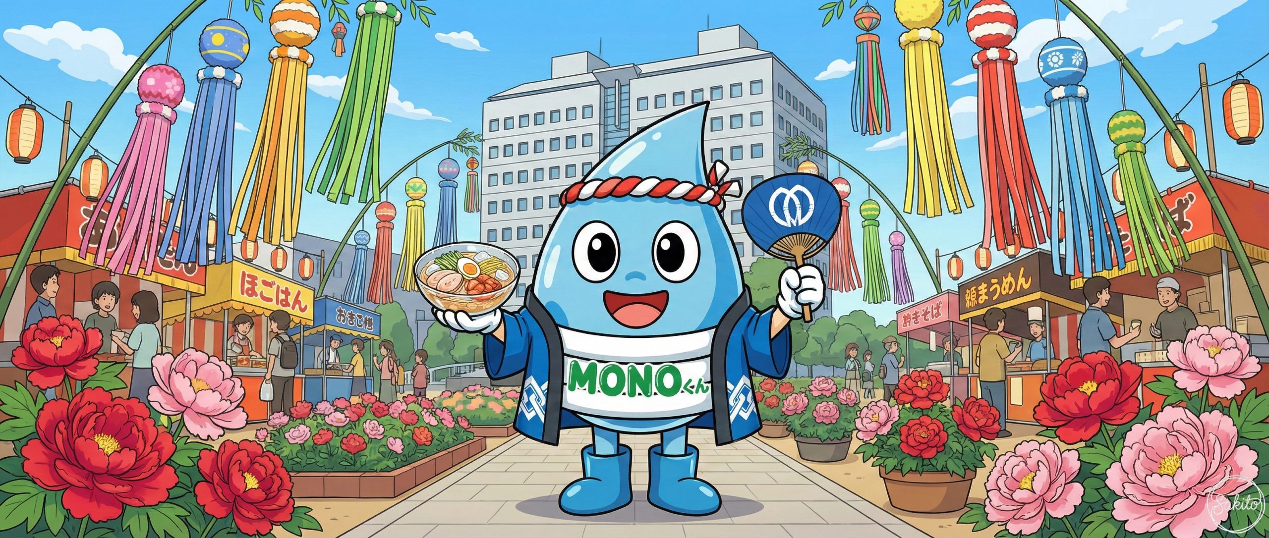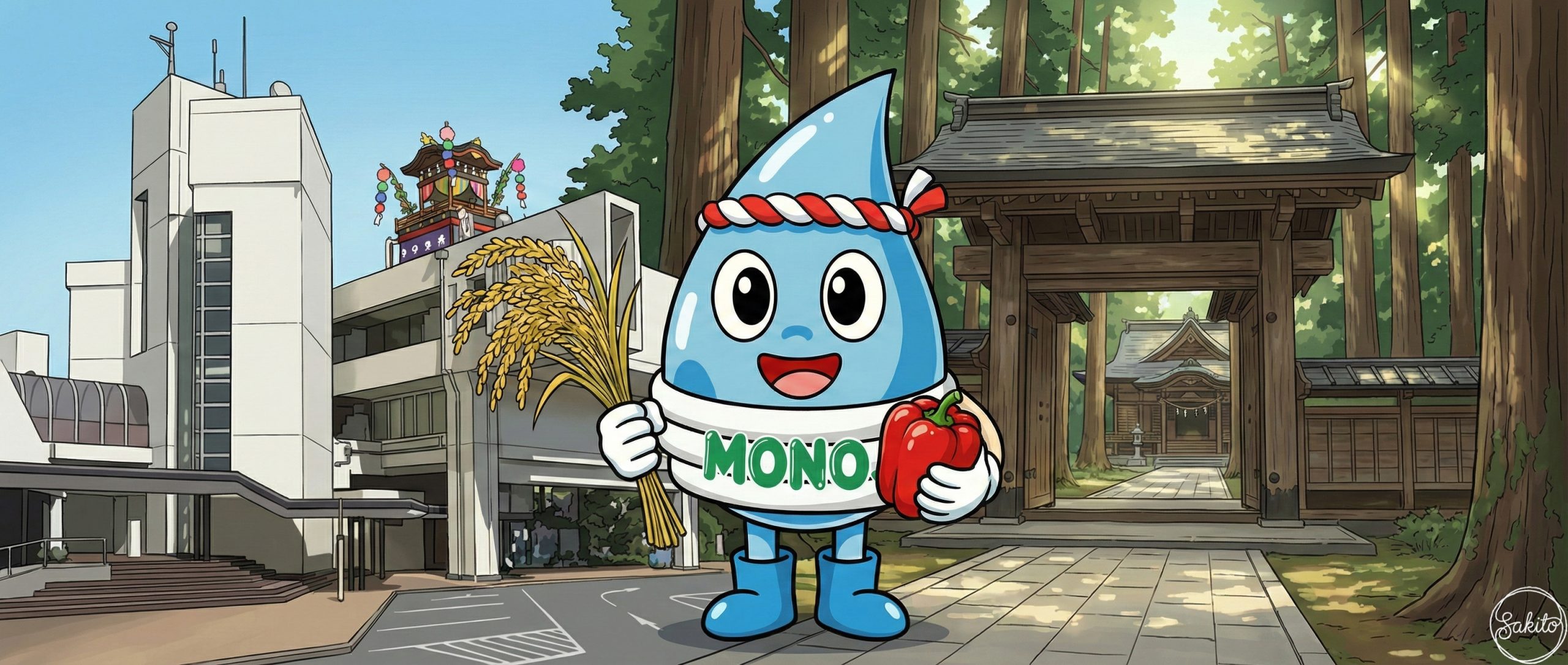 世界に誇る植木の街。歴史ある学び舎を散歩して、地元の美味しいお米を味わおう。MONOくんもお祭りの熱気にワクワクしてるよ!