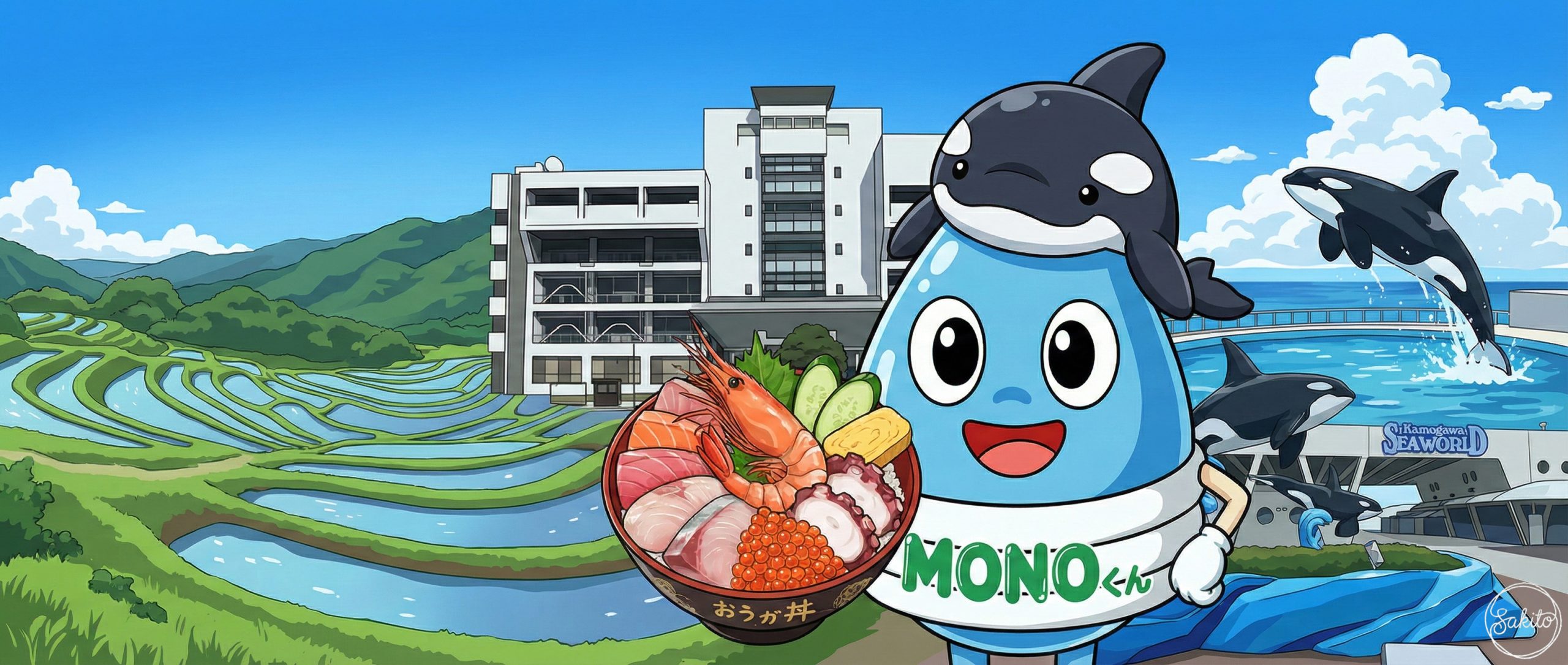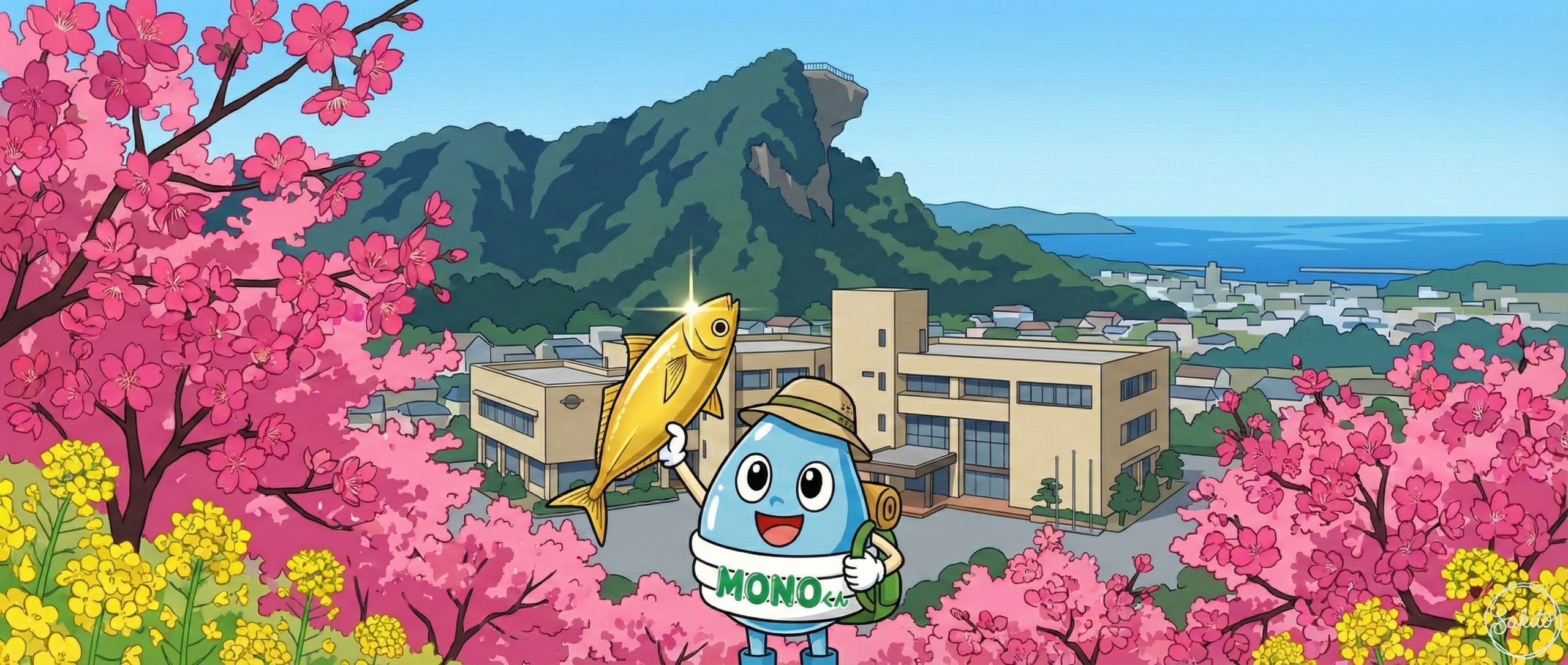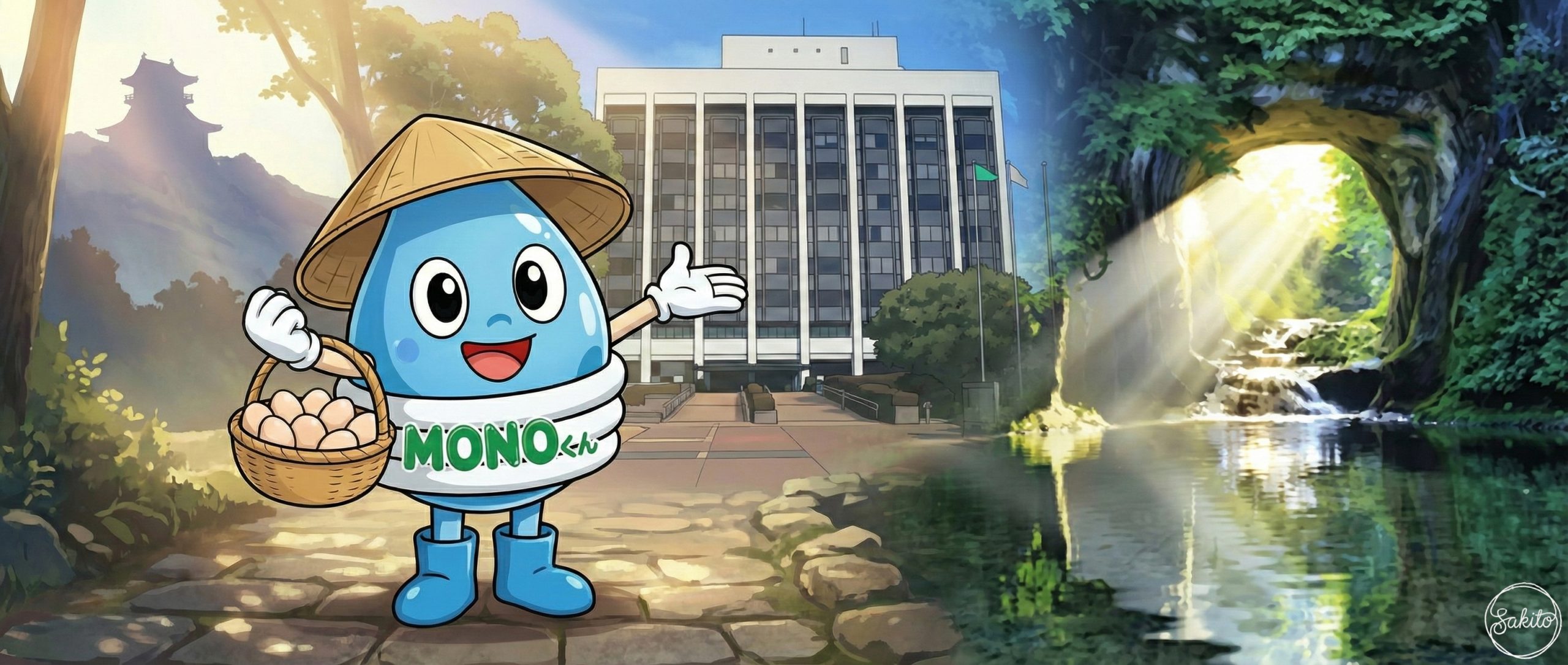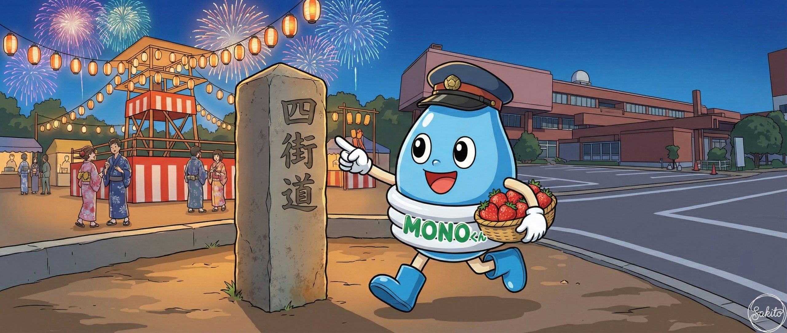 世界に誇る植木の街。歴史ある学び舎を散歩して、地元の美味しいお米を味わおう。MONOくんもお祭りの熱気にワクワクしてるよ!