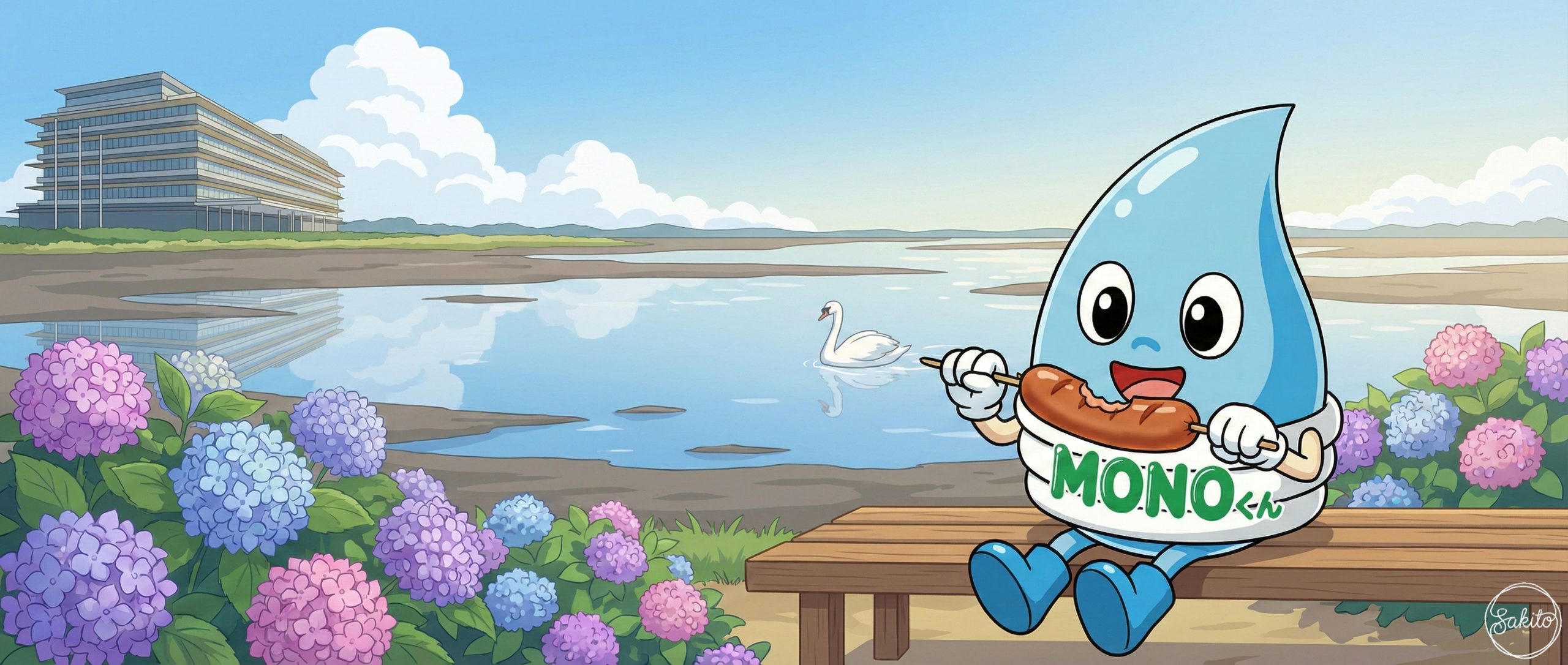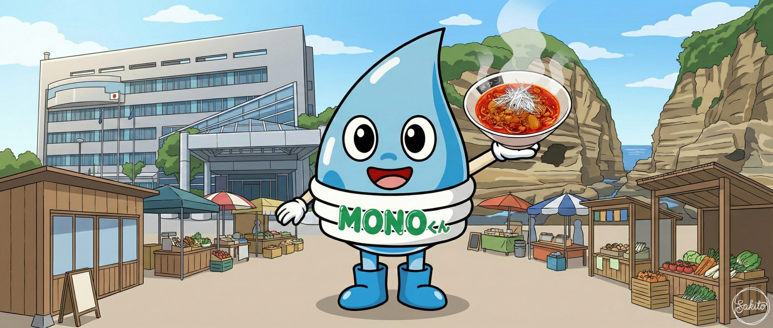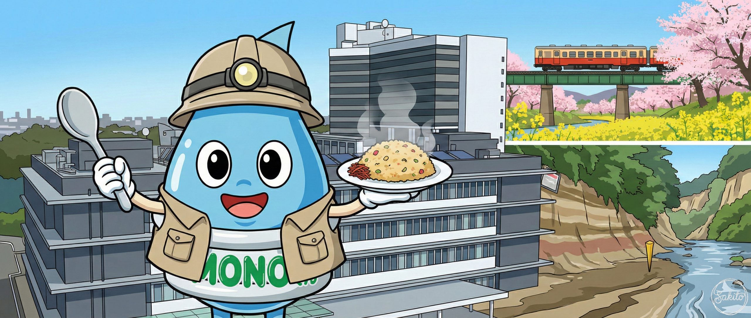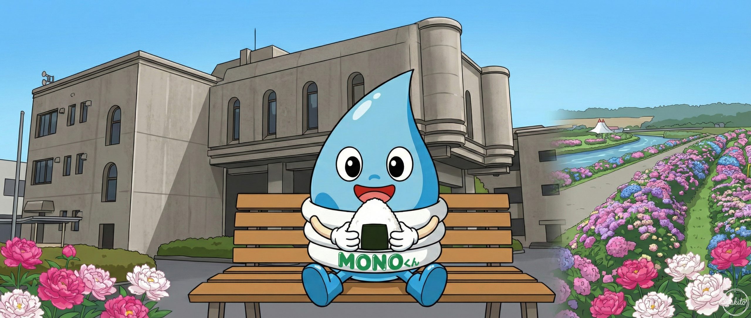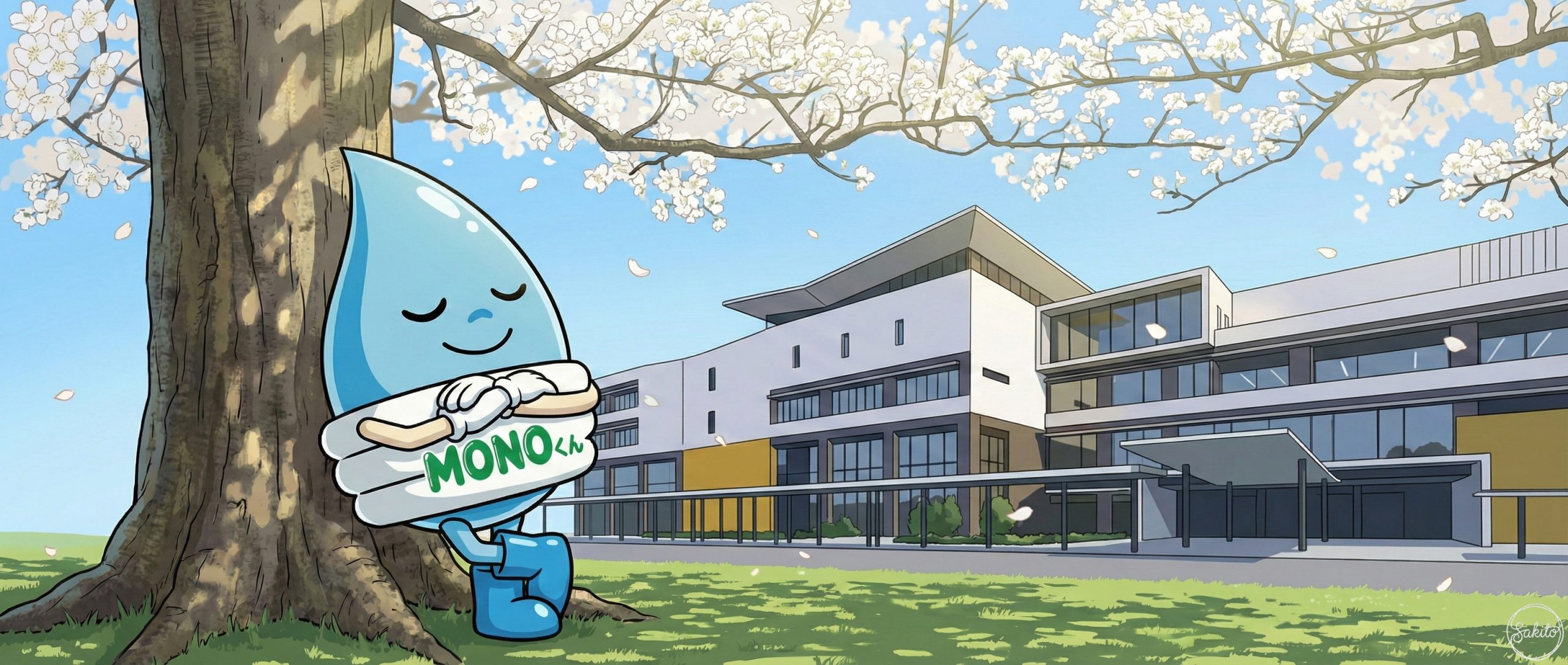 広い空と緑が広がる開放的な街。ショッピングも自然散策も一度に楽しめるよ。MONOくんと一緒に、新しい街の魅力を発見してね!