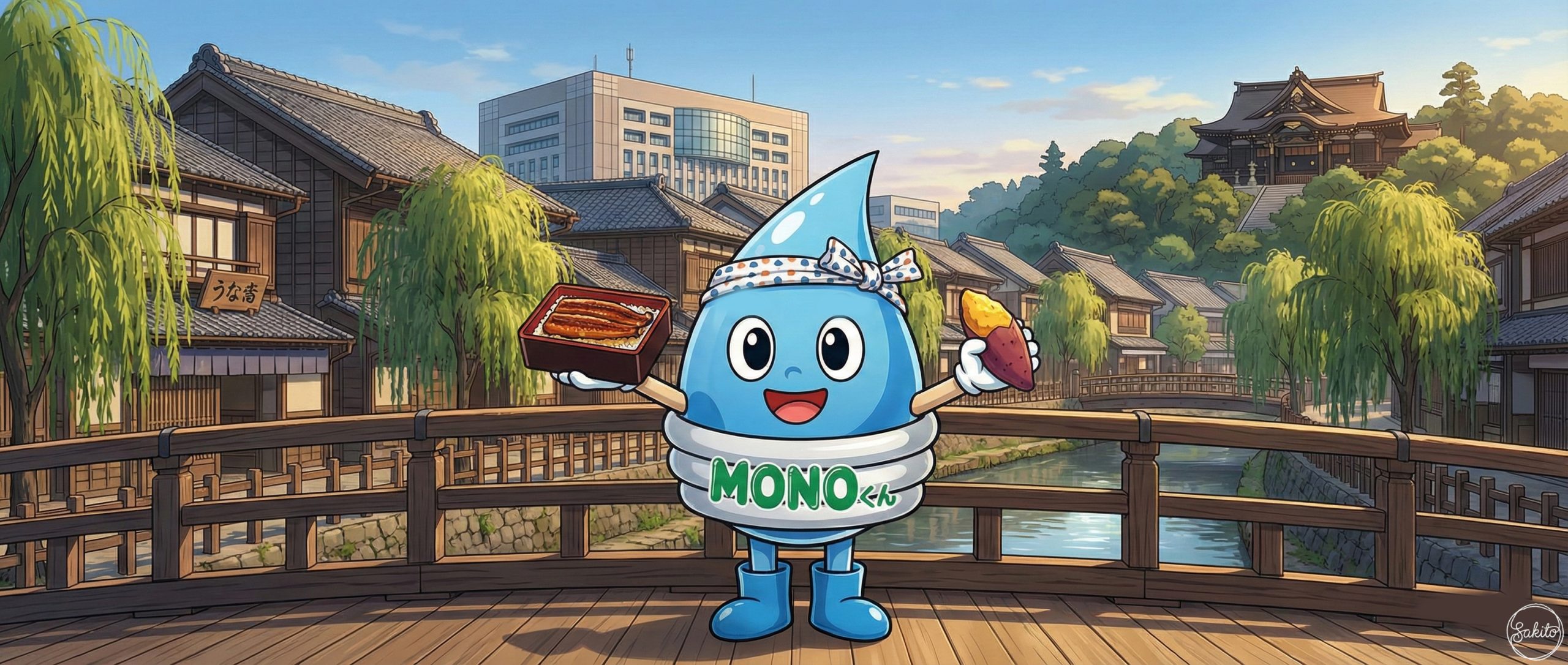 舟運で栄えた商家の町並みをMONOくんとのんびり舟遊び。歴史ある香取神宮を参拝して、美味しいお芋スイーツを楽しもう!