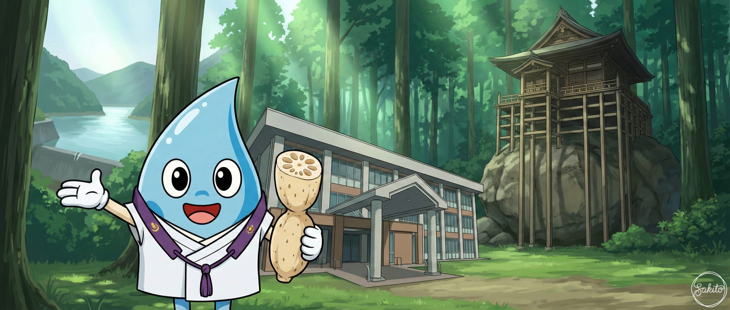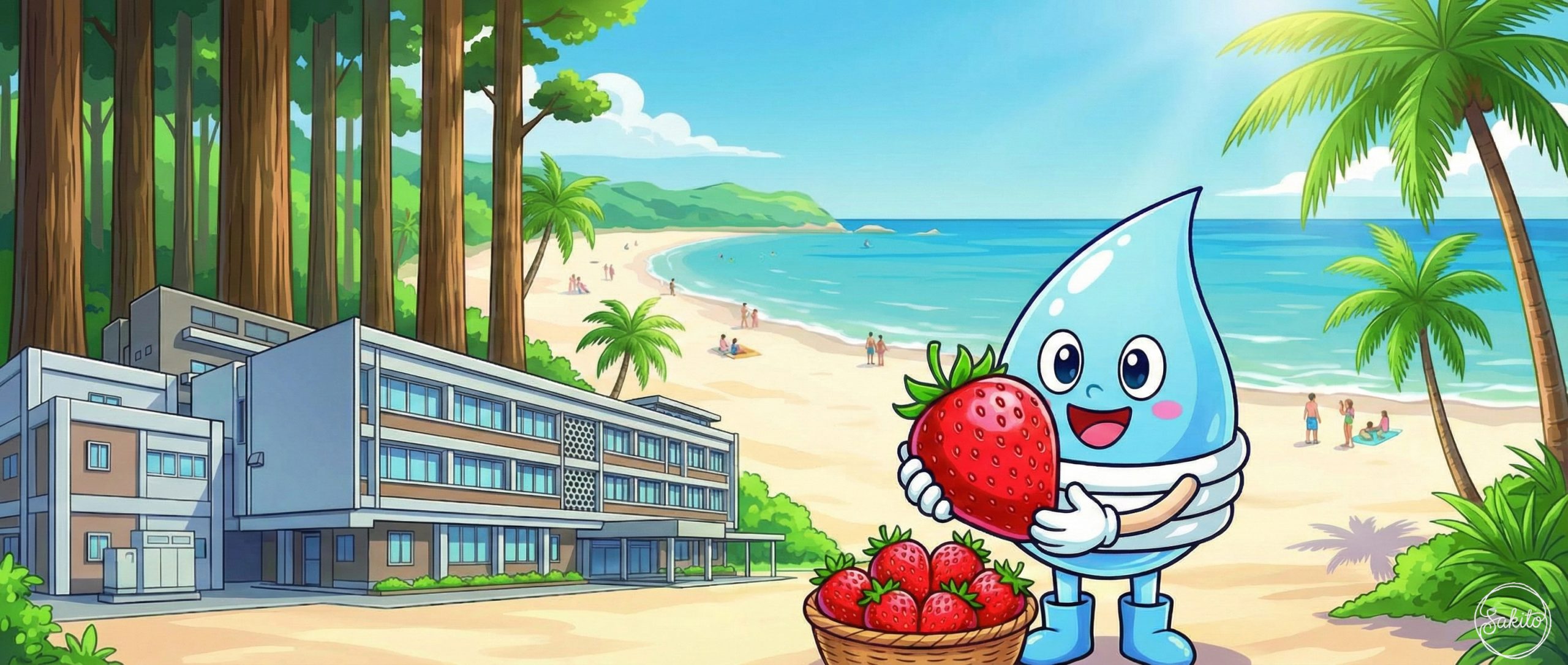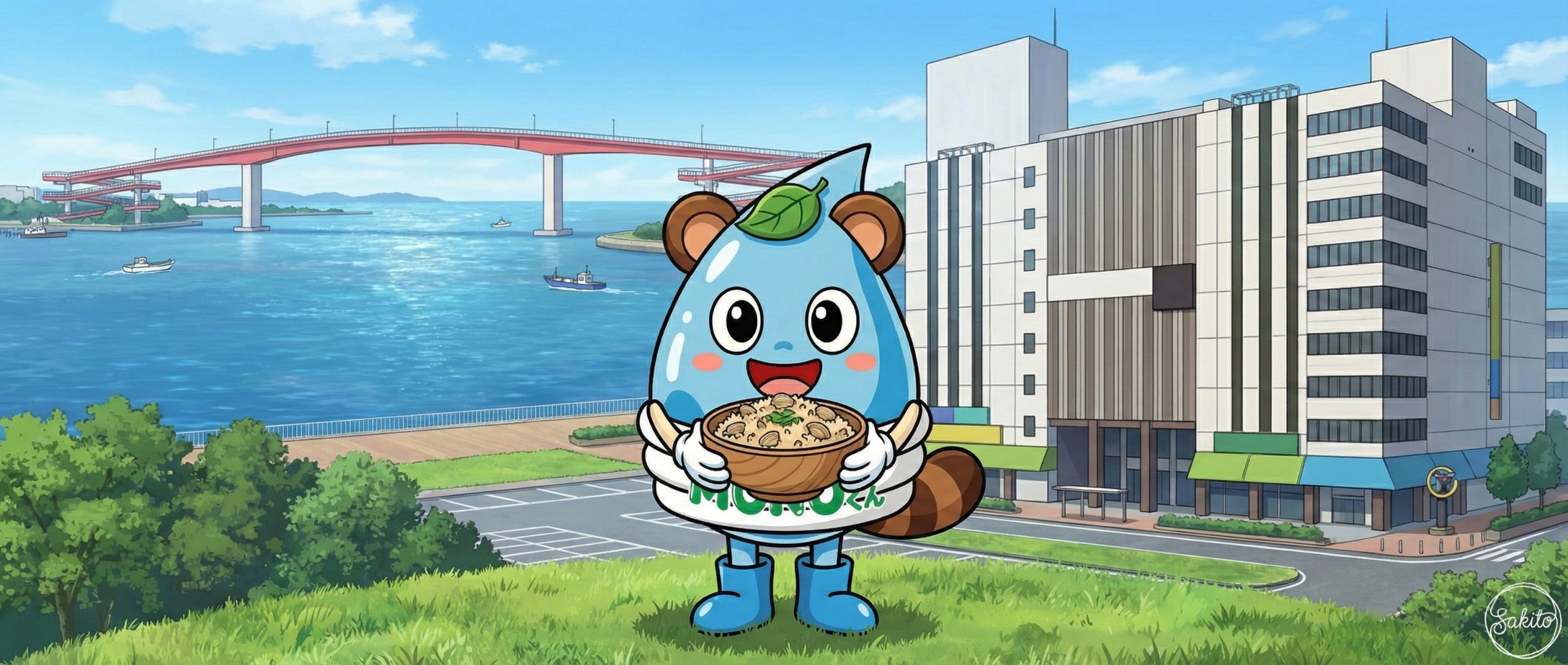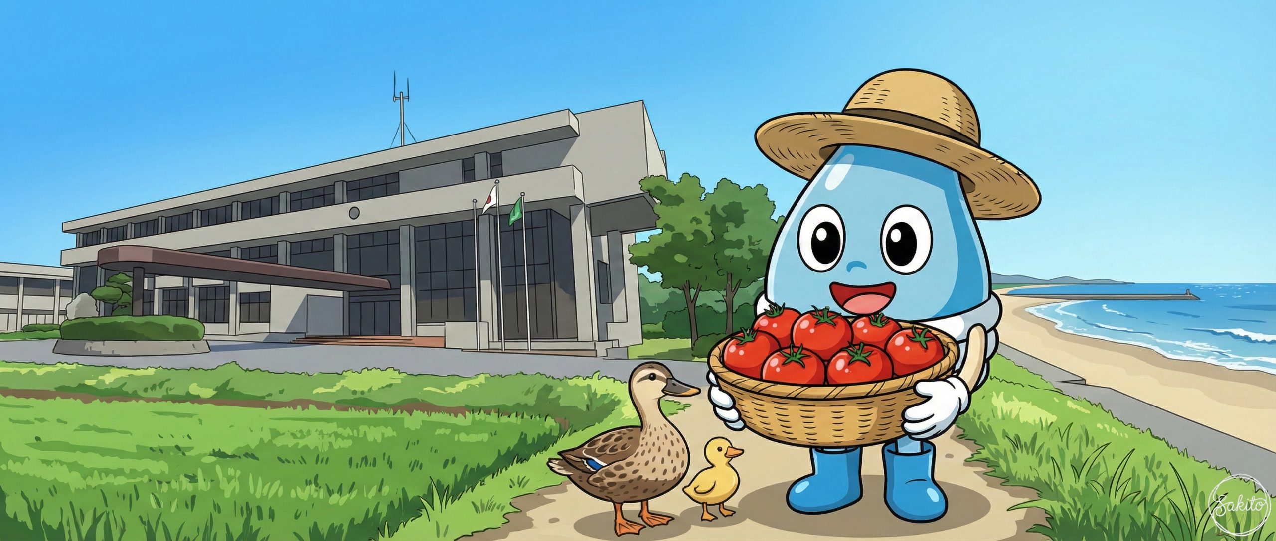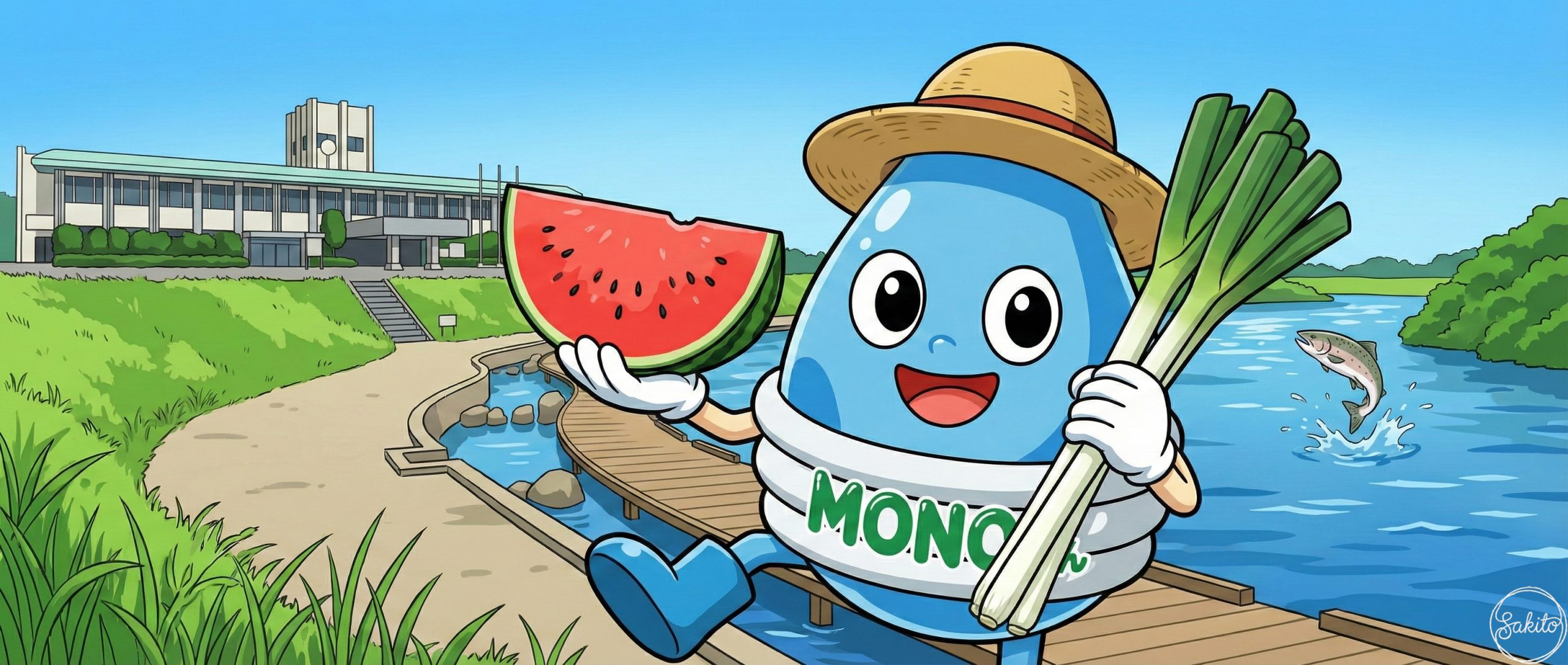 川にサケが戻ってくる自然豊かな町。甘いスイカを食べて、MONOくんと元気いっぱいに遊ぼう!
