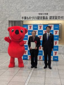 このたび、令和5年度「千葉ものづくり認定製品」に選定され、関係者の皆様に心より感謝申し上げます。