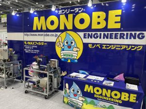 当社ブースでは、ばね式フィルターによるろ過の仕組みや、逆洗(ぎゃくせん:水を逆方向に流して付着物を除去し、フィルターを再生する方法)について、実演を交えながら紹介しました。