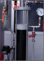 各種工業廃液ろ過テスト例(参考写真(1)~(3):タンク下部は廃液、上部はろ過液です。)